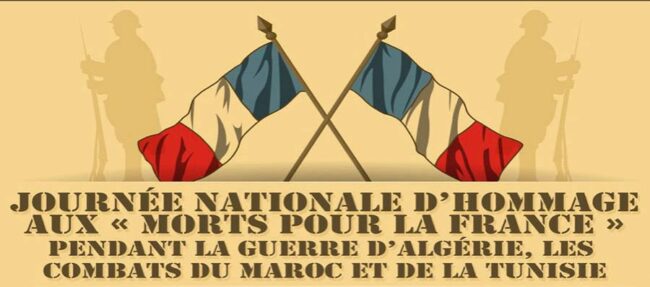 La cérémonie marquant la Journée d’Hommage aux « Morts pour la France » de la Guerre d’Algérie et des combats du Maroc et de Tunisie se déroulera le vendredi 5 décembre à 18 heures au Monument aux Morts.
